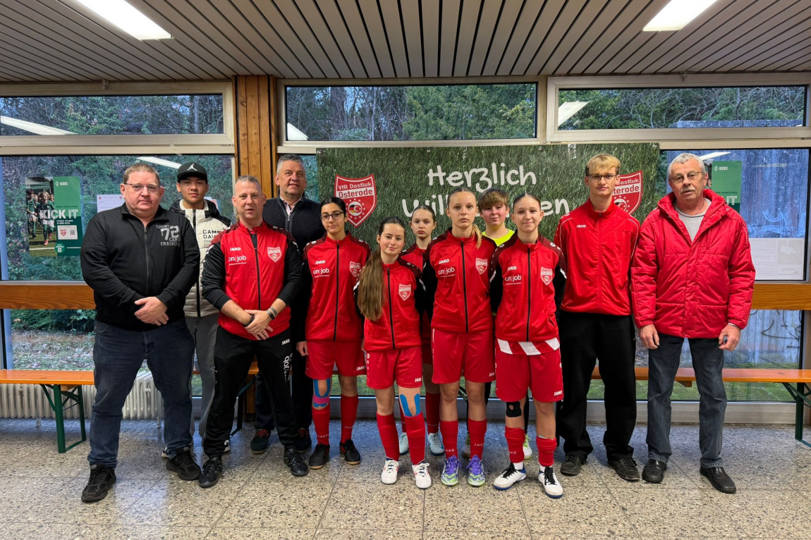 Dank einer großzügigen Spende der on job GmbH aus Duderstadt können sich unsere C- Mädels ab sofort in neuen Trainingsanzügen Präsentieren. Im Rahmen des eigenen Hallenturniers fand die Übergabe mit Herrn Kienberger und seinem Sohn von der on job GmbH statt. Die Mannschaft der Trainer und der Verein bedankten sich mit einem Präsent für dieses großzügige Sponsoring.
